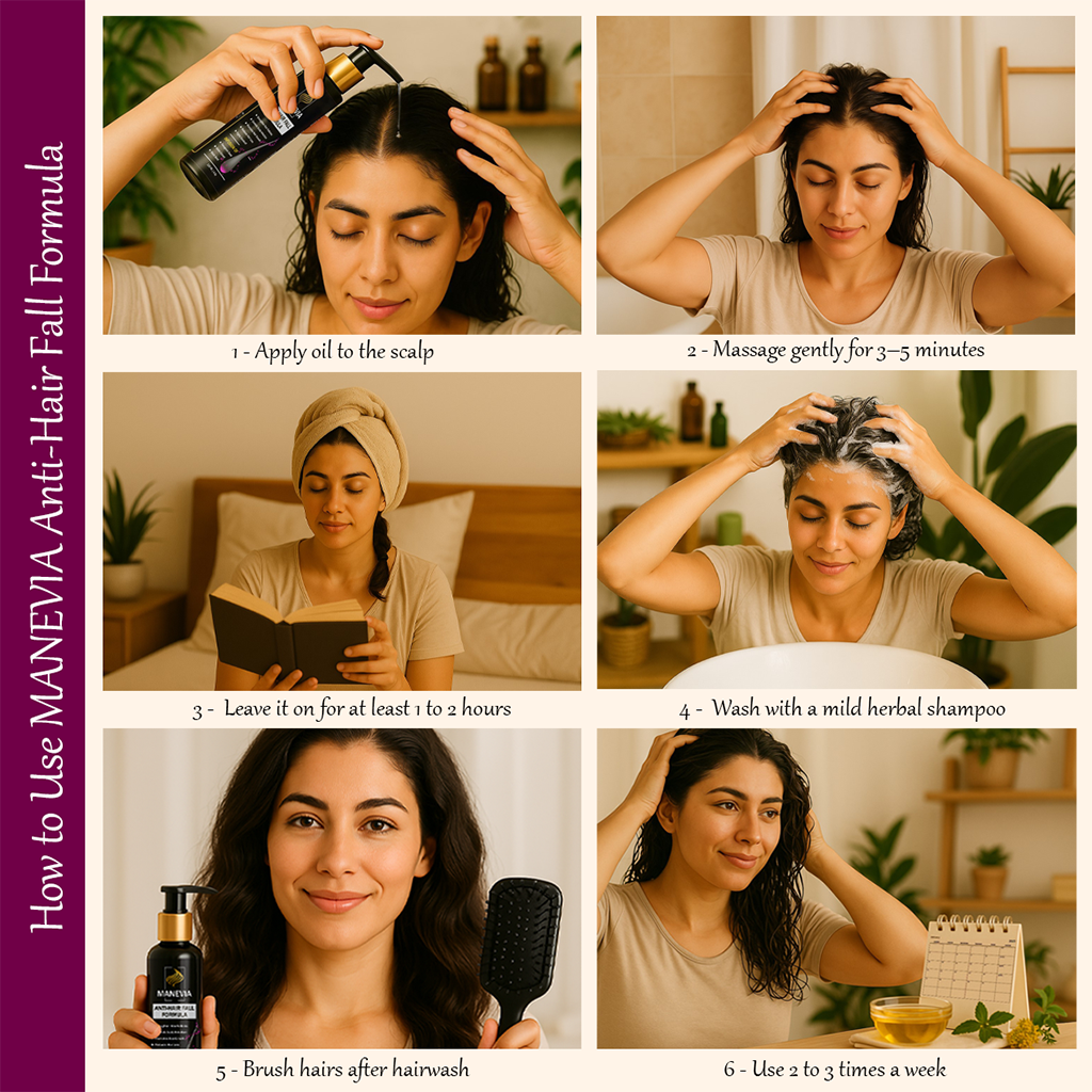 How to use MANEVIA Anti-Hair Fall Formula (Hair Oil)