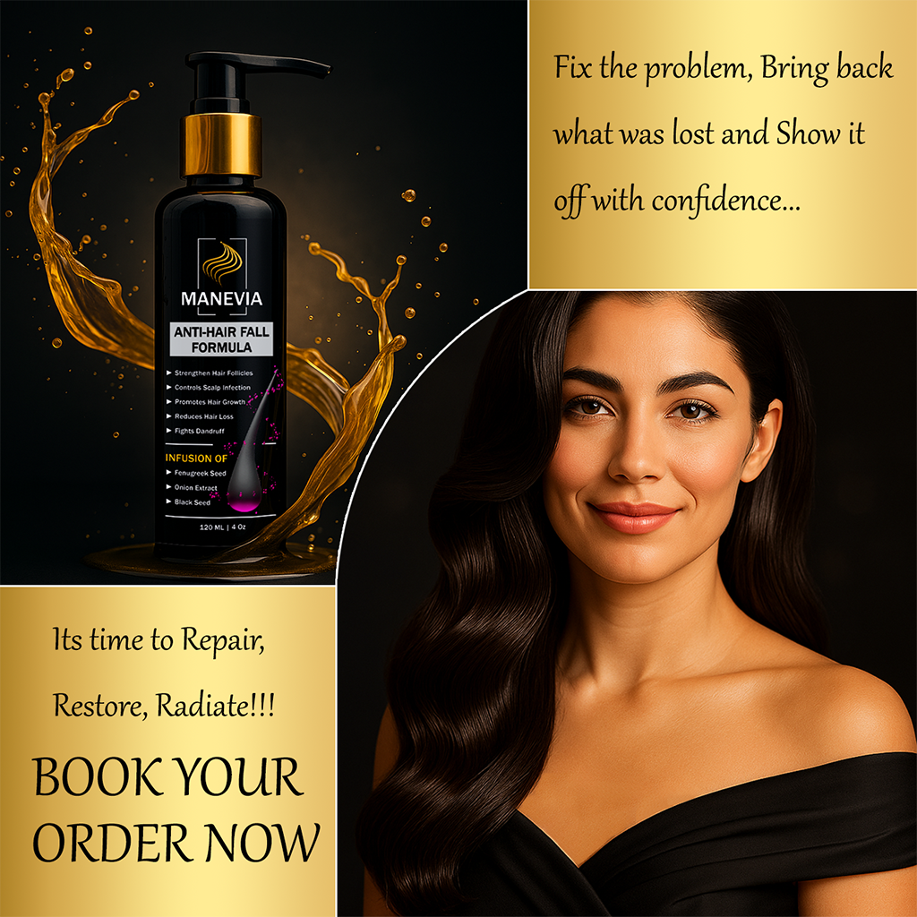 While our oil is made with carefully selected natural ingredients known to support scalp health and reduce common issues like dryness, dandruff, and hair thinning, MANEVIA Anti-Hair Fall Formula (Hair Oil) is not intended to: